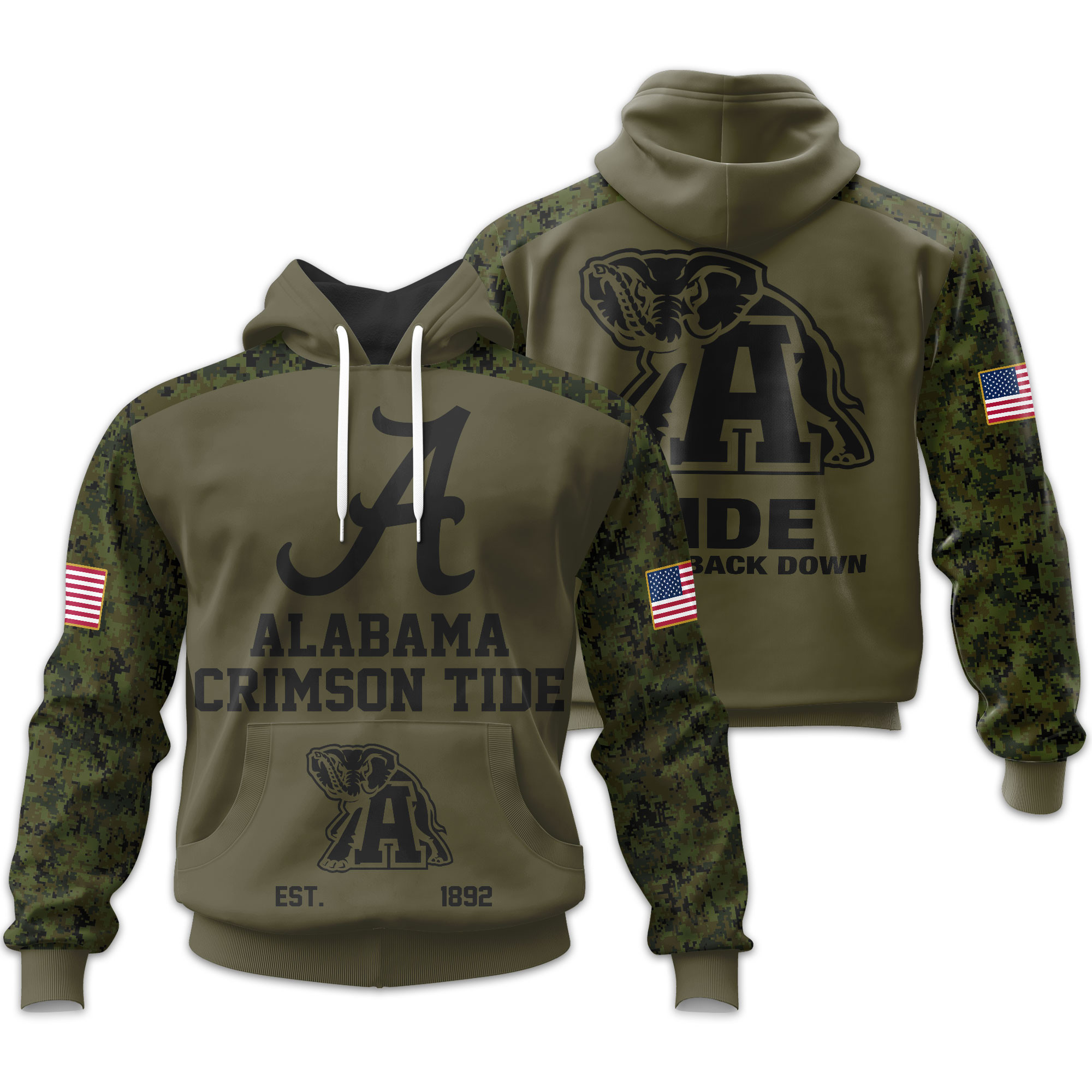 Alabama Crimson Tide | Military Green Camo Hoodie 2025